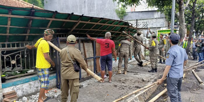 dentum.id, Mojokerto – Satuan Polisi Pamong Praja (Satpol PP) Kota Mojokerto menertibkan pedagang kaki lima (PKL) yang berjualan di trotoar dan bahu